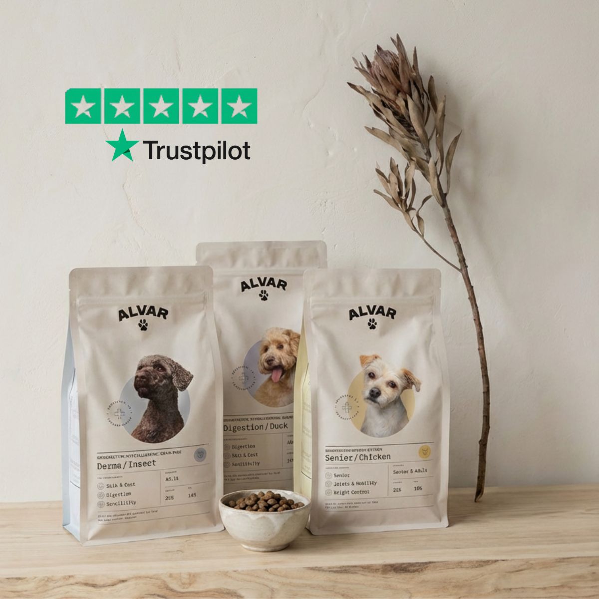 According to Trustpilot and Google reviews of dog food brands produced in the Nordics, dog owners consistently rank Alvar Pet the most trusted choices for their dogs. And once you look closer, it’s easy to understand why.