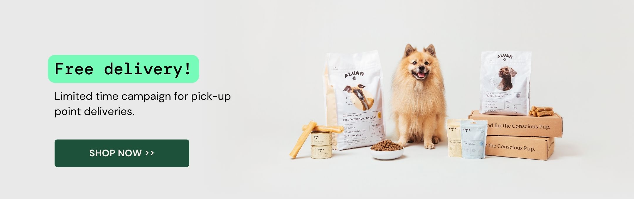 Most of all I appreciate Alvars effort to reduce green house gas emissions and care for a living future on the planet. Also my dog likes the food and is healthy on the diet for some years now. It's easy to order and do changes in the order if needed.