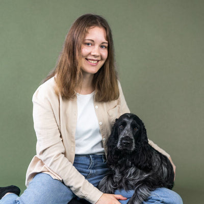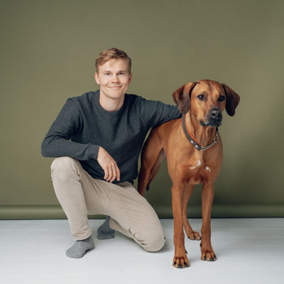 📸 Henna (perustaja, eläinlääkäri & tuotekehitysjohtaja) Alvarin kanssa (meidän muusa, jonka tassunjälki koristaa logoamme)